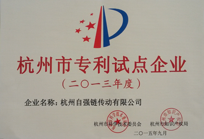 日前,杭州市科學(xué)技術(shù)委員會(huì)、杭州市知識(shí)產(chǎn)權(quán)局認(rèn)定45家企業(yè)為“杭州市專利示范企業(yè)”,230家企業(yè)為“杭州市專利試點(diǎn)企業(yè)”。東華子公司杭州自強(qiáng)鏈傳動(dòng)有限公司被認(rèn)定為 “杭州市專利試點(diǎn)企業(yè)”。