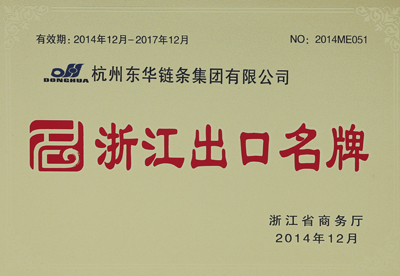 日前,東華集團(tuán)(DH)DONGHUA 牌鏈條被浙江省商務(wù)廳授予“2014—2017年浙江出口名牌”稱號,并頒發(fā)榮譽(yù)證書。該證書的擁有將會加快企業(yè)轉(zhuǎn)型升級,深入實施出口名牌戰(zhàn)略,提高企業(yè)自主品牌的出口比率,增強(qiáng)企業(yè)的外貿(mào)核心競爭力。
