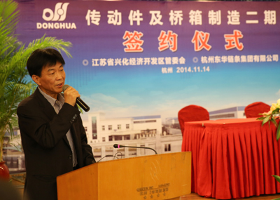 簽約儀式上,董事長(zhǎng)宣碧華致辭。他說,東華2007年收購興化齒輪廠,至今已有8年,一直得到了興化市委、市政府和興化開發(fā)區(qū)的大力支持,使一個(gè)當(dāng)時(shí)不太景氣的企業(yè),得到了新生、發(fā)展。現(xiàn)在不僅是鏈條行業(yè),齒輪、鏈輪、變速箱、橋箱將同步發(fā)展。今天簽約的興化這個(gè)項(xiàng)目,我們考慮了東華發(fā)展的增量和存量。增量是我們希望到2020年生產(chǎn)總量翻一番,興化的這個(gè)土地就是我們的增量空間。存量有兩塊,一是原來我們?cè)谕獠少彽脑牧稀⒘悴考没貋矸旁谂d化生產(chǎn),保證質(zhì)量;二是現(xiàn)在臨平三廠區(qū)制造鏈條要退二進(jìn)三,騰籠換鳥,把騰出來的廠房做新的項(xiàng)目,比如傳動(dòng)件超市、輸送機(jī)械、CVT變速箱,所以今天我們?cè)谶@兒舉行簽約儀式,對(duì)東華來講是一個(gè)很好的發(fā)展機(jī)會(huì),具有里程碑意義。