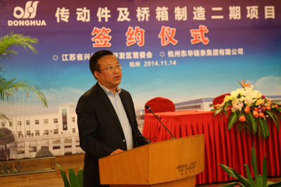 隨后,興化市副市長(zhǎng)、興化經(jīng)濟(jì)開發(fā)區(qū)黨工委書記李斌致辭。他說,東華從2007年進(jìn)入興化,收購哺育了興化齒輪廠。2010年新上鏈條項(xiàng)目,這幾年東華在興化走過了一條不平凡的發(fā)展之路,為興化市的經(jīng)濟(jì)建設(shè)作出了積極的貢獻(xiàn)。這次東華把興化作為重要生產(chǎn)基地?cái)U(kuò)建,這對(duì)東華和興化都是一件非常重大的事情。對(duì)東華來說,不僅是量的擴(kuò)展,產(chǎn)量的增長(zhǎng),對(duì)企業(yè)轉(zhuǎn)型發(fā)展也有重要意義,他為打造全產(chǎn)業(yè)鏈、控制質(zhì)量、降低成本、縮短交貨周期、更好地開拓市場(chǎng),特別是國際市場(chǎng)具有重要的戰(zhàn)略意義。對(duì)興化而言也具有非常積極的意義,因?yàn)闁|華的發(fā)展,將引領(lǐng)我們整個(gè)興化機(jī)械制造行業(yè)乃至全市工業(yè)經(jīng)濟(jì)的發(fā)展。今天的簽約儀式,是一個(gè)重要的起點(diǎn),對(duì)我們來講是一個(gè)重大的發(fā)展機(jī)遇,具有戰(zhàn)略里程碑意義。我們將認(rèn)真地、積極地為這個(gè)項(xiàng)目的落地、推進(jìn)做好服務(wù)工作,讓他快速落地,健康成長(zhǎng)。