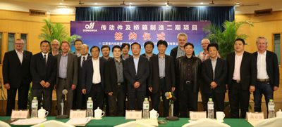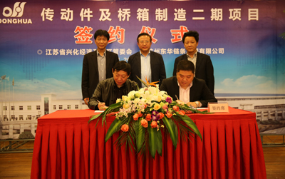 11月14日,東華集團(tuán)與興化市興化經(jīng)濟(jì)開發(fā)區(qū)舉行了傳動(dòng)件及橋箱制造二期項(xiàng)目用地簽約儀式。董事長(zhǎng)宣碧華、集團(tuán)高層、海外公司團(tuán)隊(duì)與興化市副市長(zhǎng)、興化經(jīng)濟(jì)開發(fā)區(qū)黨工委書記李斌、興化經(jīng)濟(jì)開發(fā)區(qū)管委會(huì)主任劉海山、副主任徐玉山及東華興化齒輪有限公司總經(jīng)理蔣亞龍等共同見證了對(duì)東華的發(fā)展具有里程碑意義的時(shí)刻。