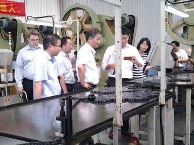 7月17日,豐田總部采購(gòu)部負(fù)責(zé)人一行到東華生產(chǎn)現(xiàn)場(chǎng)參觀。傳動(dòng)鏈?zhǔn)聵I(yè)部部長(zhǎng)及技術(shù)質(zhì)量處負(fù)責(zé)人陪同參觀。