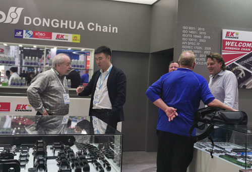 東華鏈條展出系列最新產(chǎn)品,隆重亮相展會。展廳占地100多平方米,位于傳動件展廳顯著位置,設(shè)計美觀、大氣。今年重點展出了傳動類、輸送類、農(nóng)機類、高端裝備類等最新鏈條產(chǎn)品。這些精良的產(chǎn)品代表了當(dāng)前公司高端的制造水平,吸引了無數(shù)國內(nèi)外新老客戶及參觀者的眼光。