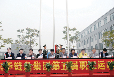 本屆運動會由工會主席魯小林主持。副總經(jīng)理袁立華致開幕辭。袁總說,今年公司創(chuàng)建22周年,在宣董事長的領(lǐng)導下,在各位員工的共同努力下,企業(yè)穩(wěn)健發(fā)展,取得卓越成效。這些成績的取得來源于東華人忠實地踐行董事長提出的“誠信、務實、創(chuàng)新、求更好”的企業(yè)精神,來源于你們發(fā)揮永不言敗的拼搏精神,來源于你們勇于開拓創(chuàng)新的改革精神,這些都是企業(yè)跨越發(fā)展的“軟實力”。今天,相信你們會在公平公正的競技中,充分凝聚和展現(xiàn)東華人的精神,超越自我,做到“工作中誠信、務實、創(chuàng)新、求更好 ; 賽場上團結(jié)、激情、拼搏、爭上游”,共同努力譜寫出東華“爭創(chuàng)世界鏈傳動行業(yè)第一”的華彩樂章。