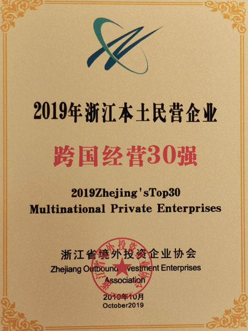 近日,浙江省境外投資企業(yè)協(xié)會(huì)發(fā)布了“2019年浙江本土民營(yíng)企業(yè)跨國(guó)經(jīng)營(yíng)30強(qiáng)”榜單,東華鏈條集團(tuán)首次上榜,排名第27位。
