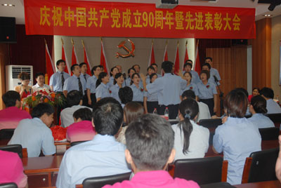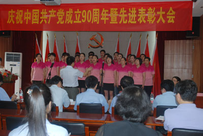 會后,進行了紀念建黨90周年員工紅歌演唱會,來自各部門的5個合唱隊、12個獨唱和1個小品進行了激烈的角逐,經(jīng)過評審團公平公正的評分,最后評出了合唱和獨唱、小品前三等獎,與會領導向獲獎團隊和個人頒發(fā)了證書并合影留念。