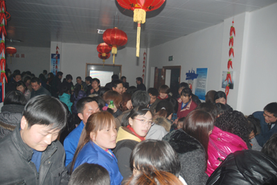 今年的“鬧元宵”游園節(jié)目豐富多彩,既有傳統(tǒng)的猜謎語、釣魚、看字表演活動,也有投羽毛球、吹乒乓球等新式活動,這些活動全部由各分工會設計、承辦。每個小節(jié)目都有禮品送,十多個節(jié)目玩下來,有些員工手上拿滿了禮品,再去抽獎。今年的獎品豐富,有MP5、電飯煲、床上用品、吹風機、洗發(fā)水等等。現(xiàn)場擠滿了游園的員工及家屬,尤其是孩子們臉上堆滿了笑容,大人、孩子都爭先恐后地去搶著玩游戲,好不熱鬧。