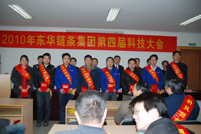 張總接著說,2009年完成并通過集團科協(xié)驗收的獲獎項目共22項。同時,東華自主創(chuàng)新技術(shù)成果獲得國家專利授權(quán)的有3項,新申報專利6項,其中發(fā)明專利1項。截止目前,東華集團共有有效授權(quán)專利技術(shù)37項。東華博士后科研工作站、東華院士工作站正常運行,并取得成效。同時參加國家863計劃中的項目也在正常開展試驗。2009年我們還在德國、荷蘭、美國、英國、泰國建立東華海外全資子公司,收購德國KOBO公司、與日本企業(yè)達(dá)成品牌與技術(shù)合作意向,使公司技術(shù)研發(fā)水平逐步與國際先進(jìn)水平接軌,公司技術(shù)研發(fā)能力得到有效提升。余杭新廠區(qū)建設(shè)以科技創(chuàng)新作為內(nèi)涵,注重采用新技術(shù)、新工藝、新工裝設(shè)備,包括開發(fā)、引進(jìn)高效自動化設(shè)備,使新區(qū)建設(shè)成為技術(shù)創(chuàng)新、新技術(shù)、新工藝采用的過程,確保了新區(qū)建設(shè)成為國內(nèi)一流的鏈條研發(fā)制造基地。