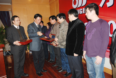 總經(jīng)理張世強(qiáng)向優(yōu)秀經(jīng)銷商代表頒獎(jiǎng)