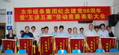 會(huì)上,總經(jīng)理張世強(qiáng)作了重要講話。張總說,在“七一”即將來臨之際,我們召開“紀(jì)念中國共產(chǎn)黨成立88周年暨五講五賽勞動(dòng)競賽表彰大會(huì)”。首先,我代表集團(tuán)領(lǐng)導(dǎo)、黨委向受表彰的先進(jìn)集體和先進(jìn)個(gè)人表示熱烈地祝賀,向他們表示崇高的敬意!號(hào)召全體黨員、全廠職工認(rèn)真學(xué)習(xí)他們的先進(jìn)事跡和崇高精神,立足崗位、艱苦奮斗,在生產(chǎn)勞動(dòng)中為企業(yè)建功立業(yè),在推動(dòng)?xùn)|華集團(tuán)持續(xù)發(fā)展中做出更大的貢獻(xiàn)。