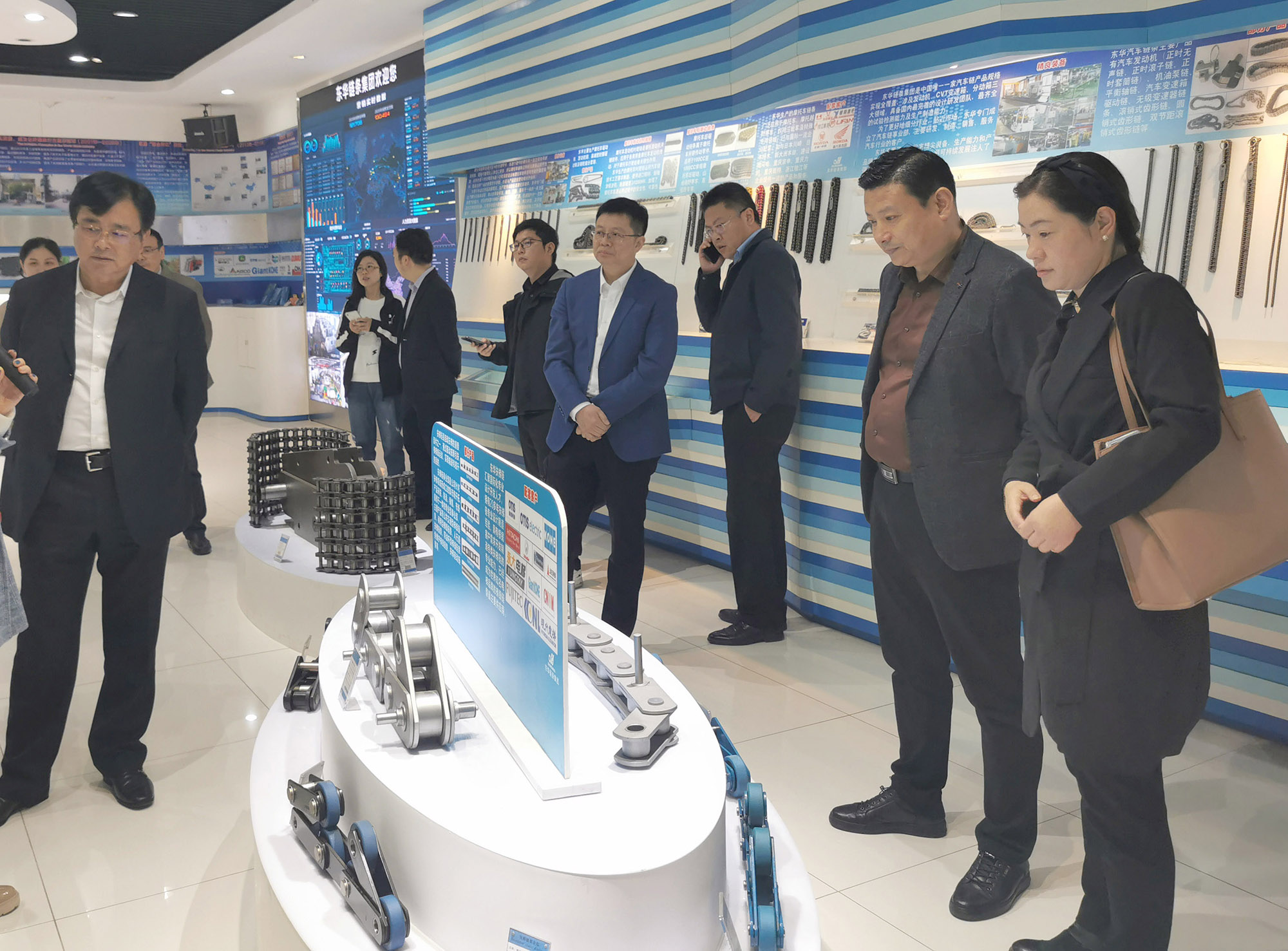 胡主任一行聽取介紹后,對東華的行業(yè)地位、綜合實(shí)力、四全兩化建設(shè)取得的成就表示贊許。他說,東華鏈條不愧是居國內(nèi)鏈傳動行業(yè)第一,世界鏈傳動行業(yè)前二位的企業(yè),生產(chǎn)三萬多種鏈條,十萬多個規(guī)格,廣泛應(yīng)用于社會各行各業(yè)。安徽省有許多大型的機(jī)械企業(yè),相信你們都有配套,希望你們多到安徽參觀交流,與我們本土企業(yè)有更多的合作。