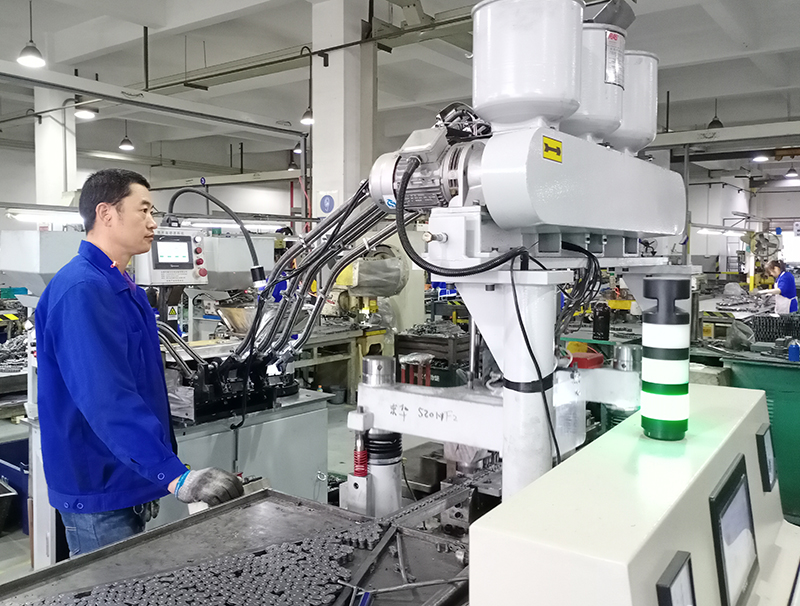東華積極應(yīng)對訂單爆發(fā)式增長,為滿足客戶交貨需求,今年一季度,公司技改設(shè)備投入已經(jīng)超過了去年全年,達(dá)到了2000多萬元。如農(nóng)機(jī)鏈?zhǔn)聵I(yè)部不斷加大技術(shù)革新,對ZGS外附板、S52外附板、A55外附板等落料壓彎一體化模具開發(fā)、投入100HHA成條機(jī)裝配設(shè)備代替人工裝配、組建CA、ZGS和A960系列裝配流水線代替原來的人工榔頭裝配,大大提升了生產(chǎn)效率,以滿足客戶的交貨需求。