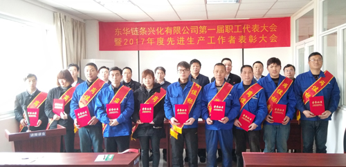 3月22日,在雄壯的國歌聲中,東華鏈條興化公司隆重召開第一屆職工(工會(huì))代表大會(huì)暨2017年度先進(jìn)表彰大會(huì)。集團(tuán)副總經(jīng)理袁立華、公司法定代表蔣錫林、公司工會(huì)主席汪昌宏、公司副總經(jīng)理邱德方、劉冬根、傳動(dòng)鏈?zhǔn)聵I(yè)部總經(jīng)理?xiàng)钚∮录捌渌袑印⒏鞣止?huì)主席、各崗位標(biāo)兵、先進(jìn)代表、職工(工會(huì))代表等60余人參加大會(huì)。