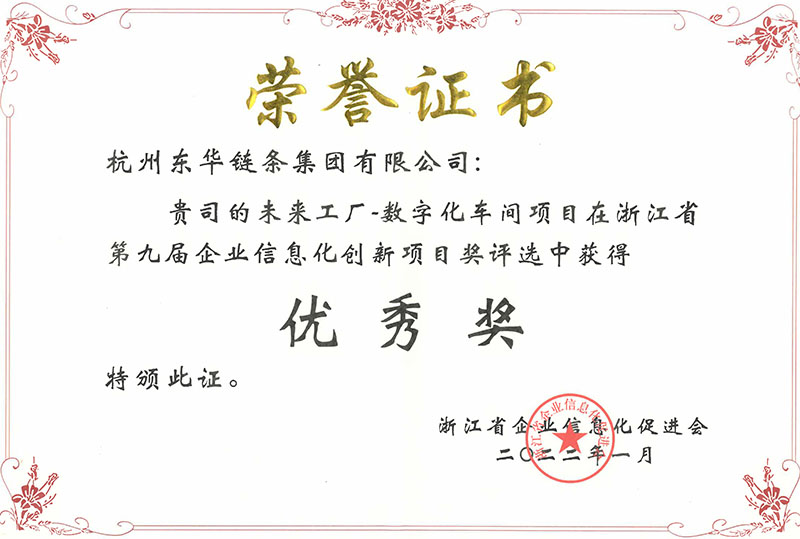 日前,由浙江省企業(yè)信息化促進(jìn)會(huì)舉辦的浙江省第九屆企業(yè)信息化創(chuàng)新項(xiàng)目獎(jiǎng)評(píng)選中,東華以板式鏈?zhǔn)聵I(yè)部制造車間為標(biāo)桿的未來工廠——數(shù)字化車間項(xiàng)目在該評(píng)選中獲得優(yōu)秀獎(jiǎng),表明東華在智能制造領(lǐng)域再創(chuàng)佳績(jī)。
