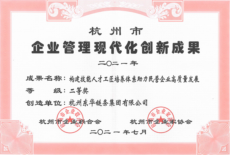 集團《構(gòu)建技能人才工匠培養(yǎng)體系助力民營企業(yè)高質(zhì)量發(fā)展》獲評2021年杭州市企業(yè)管理現(xiàn)代化創(chuàng)新成果二等獎。