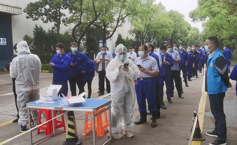對內(nèi),公司在各廠區(qū)設(shè)置核酸檢測點(diǎn),進(jìn)行全員檢測;員工進(jìn)廠及外部來訪人員一律按防疫要求檢查;?每天對各廠區(qū)嚴(yán)格消毒成為常態(tài)化舉措;專人統(tǒng)計(jì)員工的體溫、疫苗接種、核酸檢測、健康碼變色等情況,登記造冊,及時了解員工情況。