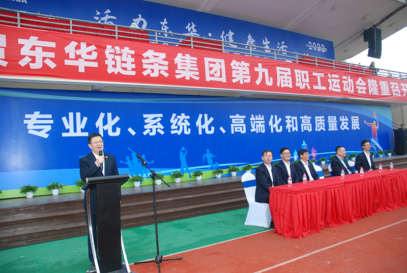 這些年來,東華鏈條集團在各級政府、客戶、合作伙伴的關(guān)心和支持下,全體東華人不斷努力,攻堅克難,取得了良好的成績,同時,我們也在關(guān)注職工身心健康和全面發(fā)展。近年成立了10個運動俱樂部,吸引不同興趣愛好的職工投入到運動中。今天下起小雨,這為運動會增添了一層含義,就是企業(yè)在發(fā)展中,講天時、地利、人和,但其中天時是我們無法控制的,就像這個市場環(huán)境是我們沒有辦法決定的,但是我們今天仍然克服了各種困難,讓運動會按時舉辦,這是通過這屆運動會向我們?nèi)w東華人傳遞一個信心,即無論我們的市場環(huán)境如何變化,我們都要奮發(fā)圖強,勇往直前。希望大家在運動會上秉持更快、更高、更強、更團結(jié)的奧林匹克精神,讓東華在這樣一種運動精神的指引下,讓我們把運動精神帶到以后的工作當(dāng)中,讓我們一起為東華成為世界領(lǐng)先的鏈傳動企業(yè)而奮斗。