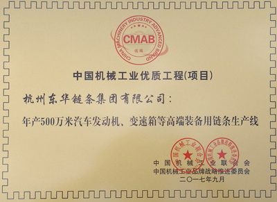東華“年產(chǎn)500萬米發(fā)動機(jī)、變速箱等高端裝備用鏈條生產(chǎn)線”榮獲中國機(jī)械工業(yè)優(yōu)質(zhì)工程(項(xiàng)目)獎