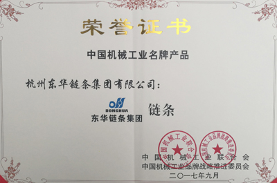 “東華”牌鏈條榮獲中國機(jī)械工業(yè)名牌產(chǎn)品稱號