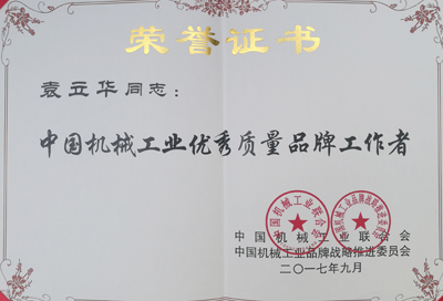 副總經(jīng)理袁立華被授予“中國機(jī)械工業(yè)優(yōu)秀質(zhì)量品牌工作者”稱號