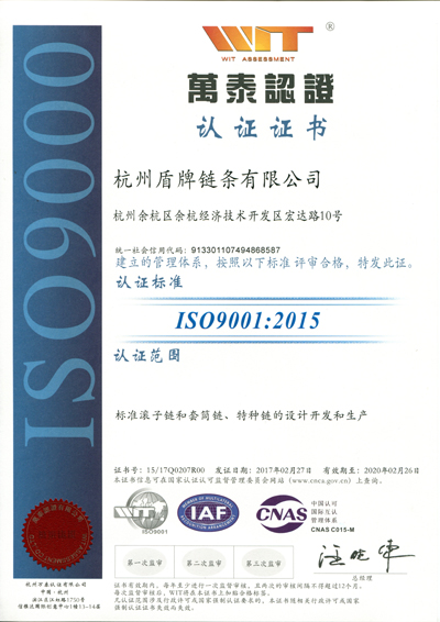 2015版本質(zhì)量、環(huán)境管理體系認(rèn)證為當(dāng)前國際標(biāo)準(zhǔn)最新版認(rèn)證。盾牌公司順利通過認(rèn)證,代表著公司在標(biāo)準(zhǔn)滾子鏈和套筒鏈、特種鏈的設(shè)計開發(fā)和生產(chǎn)及其所涉及的環(huán)境管理在管理體系上走在了同行的前列,為進(jìn)一步提升客戶服務(wù)、樹立品牌形象提供了更加有力的支撐。