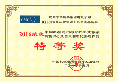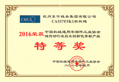 中國機械通用零部件工業(yè)協(xié)會自2004年來在全行業(yè)開展了自主創(chuàng)新優(yōu)秀新產(chǎn)品獎的評選活動,東華集團連續(xù)13年每年都有高端產(chǎn)品獲獎,累計已獲得行業(yè)自主創(chuàng)新優(yōu)秀新產(chǎn)品獎45項、其中特等獎23項。2016年度的獲獎項目再創(chuàng)新高,這些產(chǎn)品既充分展示了東華集團科技創(chuàng)新取得的豐碩成果,也彰顯了公司在鏈傳動行業(yè)的標桿地位。