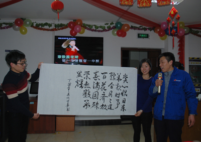 會議期間,還組織通訊員進行了才藝表演評比,節(jié)目大多是通訊員自己創(chuàng)作的相聲、朗誦、書法、歌舞等,充分展示了通訊員多才多藝的一面。經(jīng)過大家多姿多彩的表演,最終,方健的吉它伴唱《同桌的你》獲一等獎;谷明沖、付冰的相聲《傳動鏈那些事》獲二等獎;何中華的書法《最愛東華報》和王曉霞、劉榮軍的歌伴舞《紅梅贊》獲三等獎。