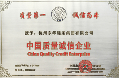 日前,中國檢驗(yàn)檢疫協(xié)會公布了2016年“中國質(zhì)量誠信企業(yè)”名單。東華鏈條集團(tuán)自2012年以來連續(xù)3屆被授予“中國質(zhì)量誠信企業(yè)”稱號。