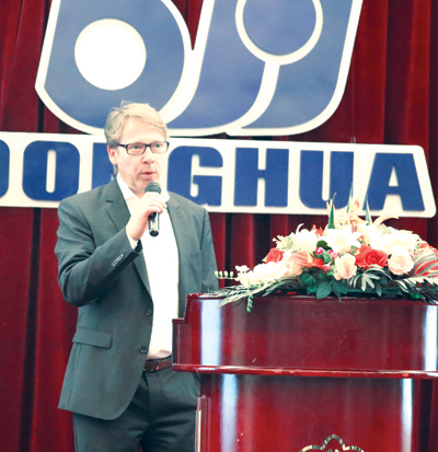 東華收購(gòu)的德國(guó)KOBO公司總經(jīng)理Bovenkamp先生就全球化和一體化資源整合進(jìn)行了發(fā)言。