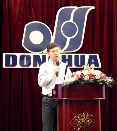 東華荷蘭公司總經(jīng)理Morskate就東華全球制造、品牌建設(shè)、銷售等進(jìn)行了匯報(bào)和展望。