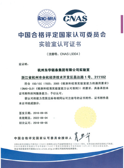 CNAS認(rèn)可資格的取得,標(biāo)志著東華鏈條集團(tuán)實(shí)驗(yàn)室的檢測能力達(dá)到了國家級水平,也是集團(tuán)公司不斷滿足客戶要求,實(shí)現(xiàn)公司爭創(chuàng)世界第一的鏈傳動(dòng)企業(yè)的目標(biāo)具有里程碑意義的重大成果。