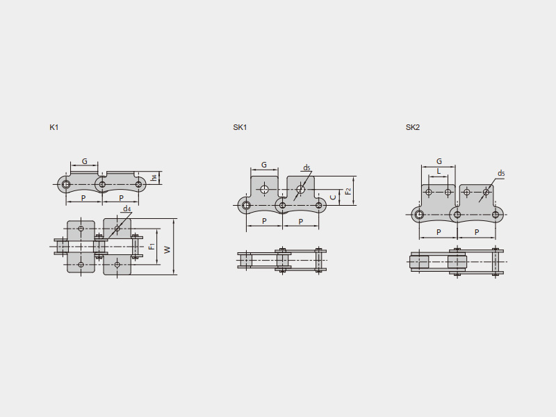 | 單節(jié)距帶K1附件 | 單節(jié)距帶SK1附件 | 單節(jié)距帶加長銷軸附件 |