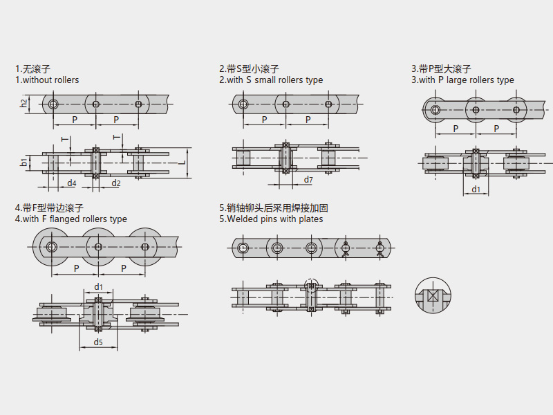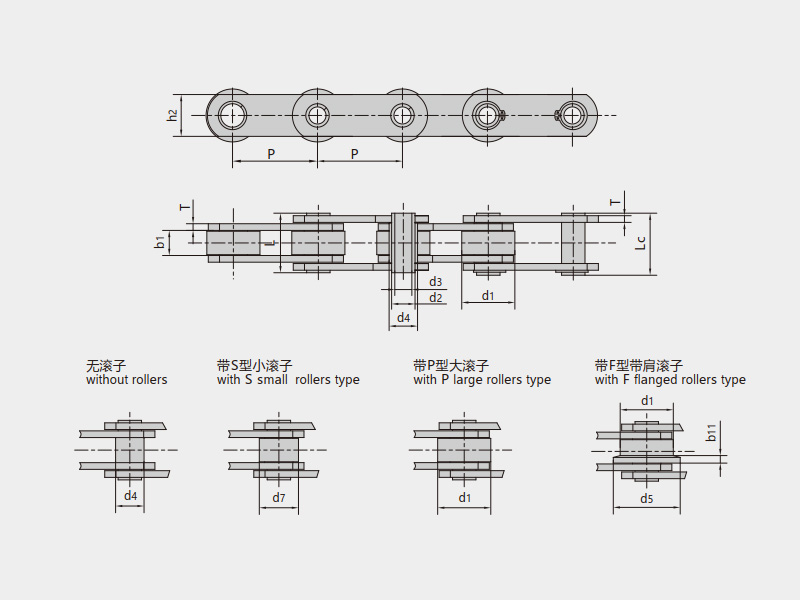帶S型小滾子帶P型大滾子帶F型帶肩滾子