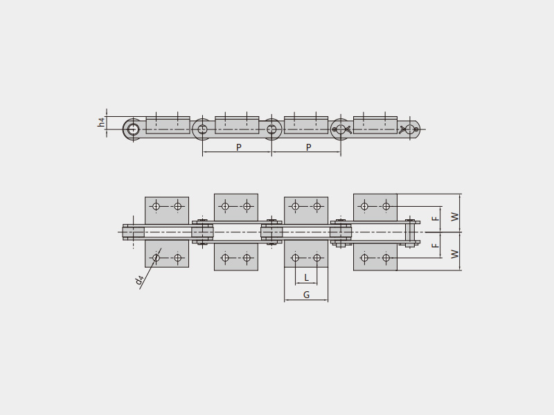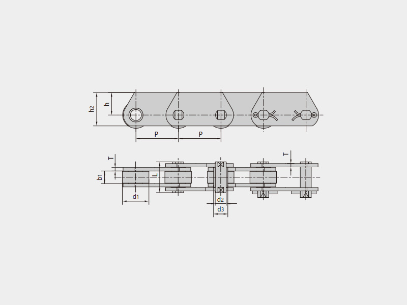 ● 米制輸送鏈?zhǔn)侵告湕l節(jié)距為公制整數(shù)(節(jié)距范圍40mm~1000mm的多種節(jié)距)的滾子鏈或套筒鏈,滾子有多種結(jié)構(gòu)形式,根據(jù)使用工況配置各種附件。
